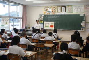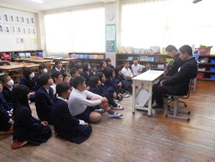 4年生は社会科で「事故・事件のないまちを目ざして」の学習を進めています。今回、天草警察署から警察官2名を講師に招き、天草市の現状や身近なところで行われている取り組みなどについてお話を聞きました。子どもたちは熱心に話を聞き、メモをしたり質問をしたりしました。