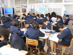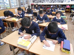 右は書写に取り組む様子です。文化展に向けて頑張っています。