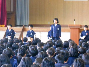 12月22日(金)2学期の終業式を行いました。終業式では、各学年の代表が2学期を振り返り、成長したことや3学期の抱負などを発表しました。また、校長先生のお話を聞き、「命」について全員で考えました。教室では、どきどきわくわくの通知表をもらったり、大掃除を行い教室をきれいにしたりしました。