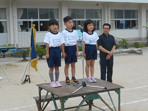 1学期の終業式を行いました。各学年代表による1学期の振り返りでは「あいさつをがんばりました」「漢字大会・計算大会にむけた取り組みをがんばりました」などの頑張りをたくさん聞くことができました。