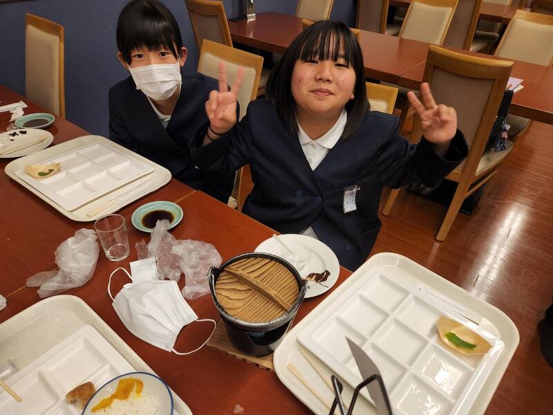 食事をしたあとは、班ごとに郷土料理について質問したり、食生活改善推進委員・山本様からのお話を聞いたりしました。
