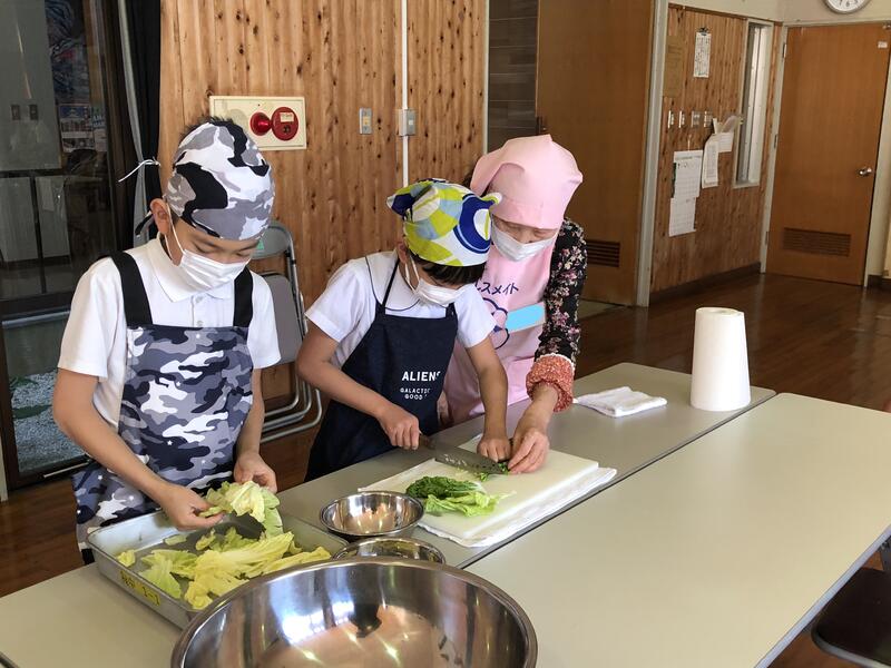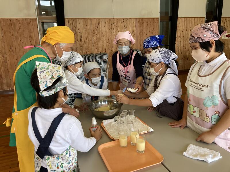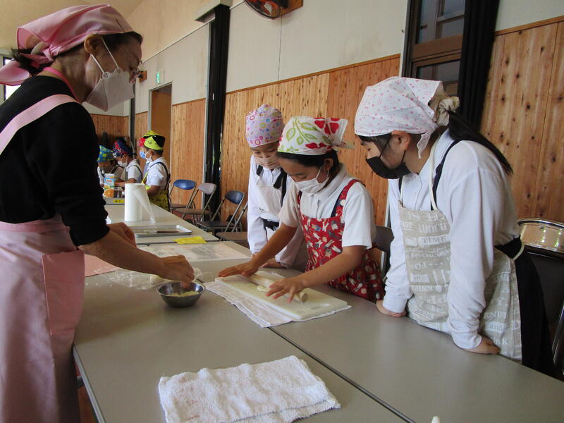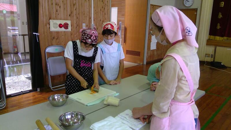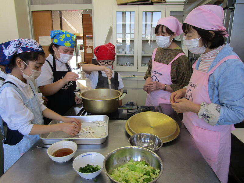 ふるさと料理教室で、地域の方と一緒に料理を作りました。