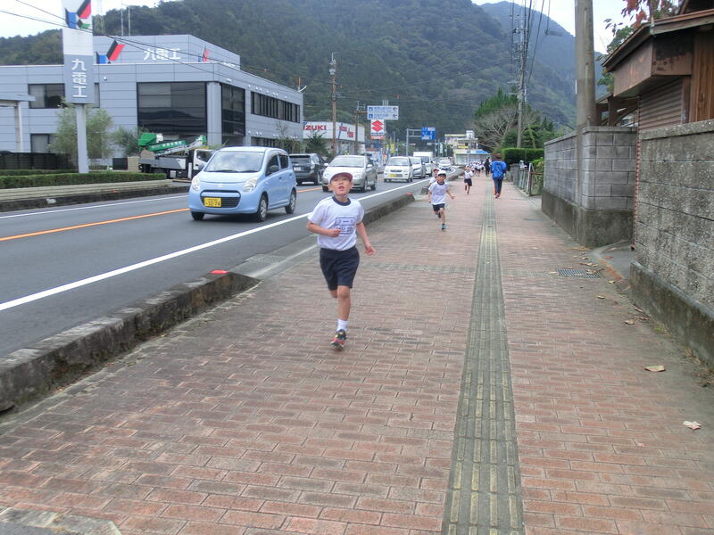 12月の持久走大会の練習を頑張っています。目標タイムに近づくように自分のペースで走っています。