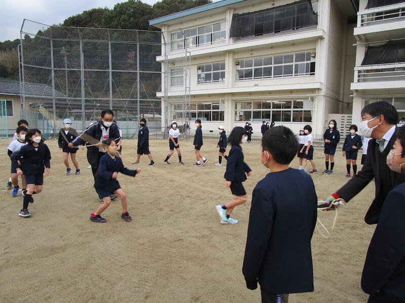 1月12日(木)3学期初の体育で、初めて縄跳びに挑戦しました。3学期から縄跳びを使うことを知り、冬休み中にたくさん練習したと話している児童も多く、みんな張り切って挑戦しました。