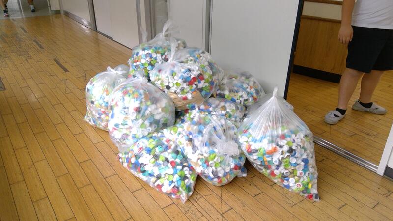 こちらも、多くの子供たちが協力してくれて、たくさんのキャップが集まりました。