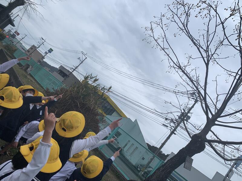 秋と違うところを探しました。寒さに負けず、子供たちは「木の葉がないよ~。」「バッタはどこにいるんだー。」と、一生懸命冬らしさを探していました!