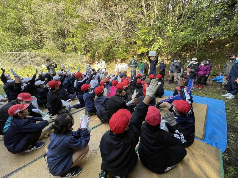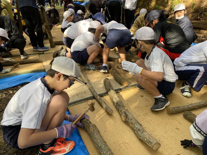 【5年生】苓山寮との交流~しいたけコマ打ち体験~