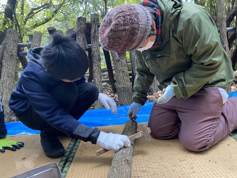 2月27日(火)に苓山寮の方々との交流で、しいたけのコマ打ちを体験させていただきました。