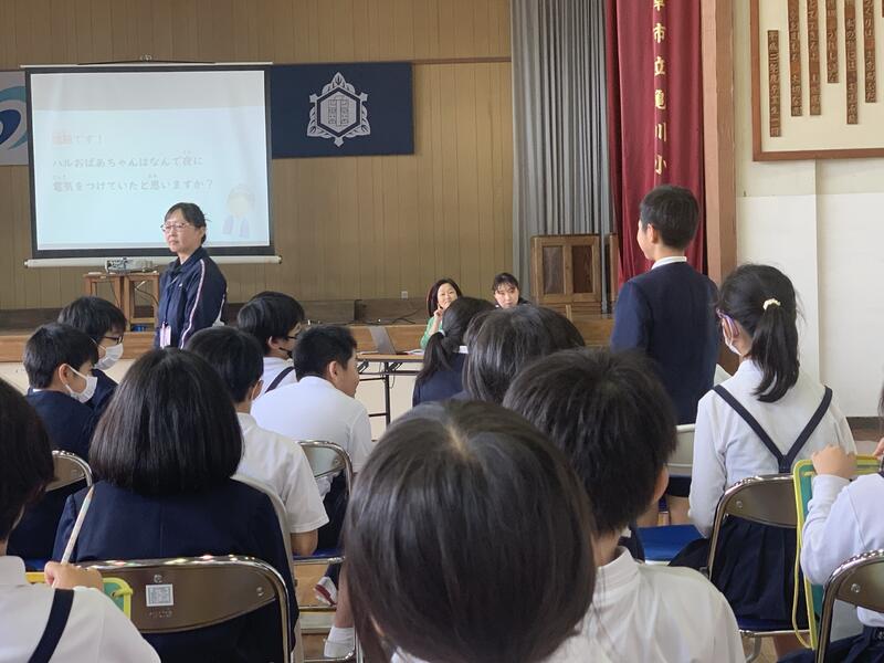 亀川小学校の4年生は夏休みに学年行事を行いました。水俣の環境センターの方を講師にお招きし、海洋プラスチックなどごみ問題について話を聞きました。海に囲まれた環境で育った子供たちは、環境問題に関心をもち、美しい天草の海を守るためには・・と考えることができました。