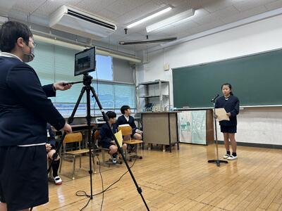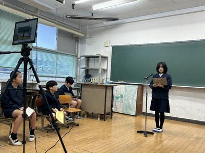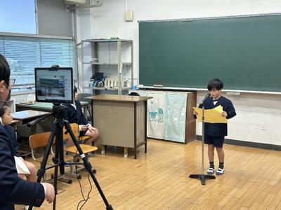今日は枦宇土の老人会長の井上様をゲストティーチャーとしてお迎えし6年生が戦争の様子を学びました。戦争の様子から戦争の後、人々に終戦を知らせたものについて、これまで井上様が新聞記事やテレビ等で発信されてきたことについて深く知ることができました。この貴重なお話を天草市からは動画に収めに来校されました。井上様ありがとうございました。