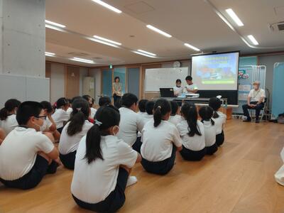 亀川小学校の4年生は夏休みに学年行事を行いました。水俣の環境センターの方を講師にお招きし、海洋プラスチックなどごみ問題について話を聞きました。海に囲まれた環境で育った子供たちは、環境問題に関心をもち、美しい天草の海を守るためには・・と考えることができました。