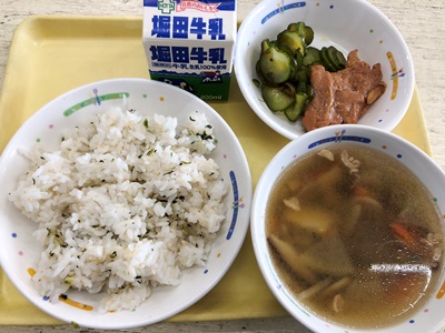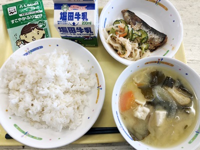 ごはん 牛乳 わかめスープ 大根の酢の物 焼き肉