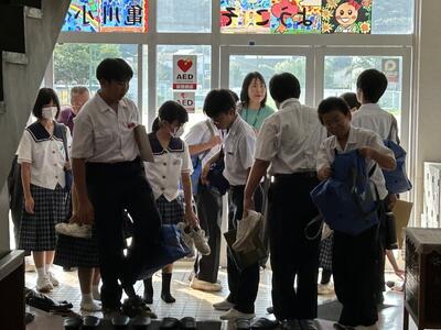 8月30日から31日にかけて亀川地区の防災キャンプがありました。1年生から4年生のみなさん、保護者のみなさん、中学生、高校生が参加していました。消防車、パトカー体験、非常時に活躍する車に乗りどのような活動をされるのか学びました。竹を使ったマイ箸づくり、警察官の方々による逃走中、どれも楽しみながら防災を学ぶプログラムでした。参加してくださったみなさん、ありがとうございました。