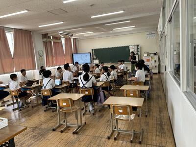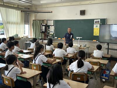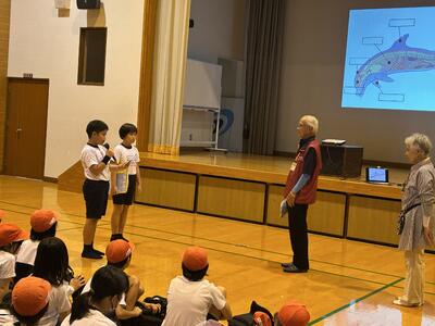 今日は五和のイルカセンターで四年生がイルカウォッチングを体験しました。今年から四年生においても新たにスタートした天草市教育委員会が進めている天草体験学の一環です。