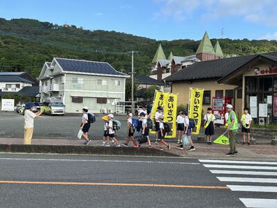 毎月1日、15日は地域の民生委員さん、振興会のみなさん、安全協会のみなさんなど、多くの方々が挨拶運動ならびに登校支援をしてくださいます。今月も本校児童も参加し、地域の方々に負けないよう挨拶運動をしました。地域のみなさん、いつもありがとうございます。私達も二学期も頑張ります!