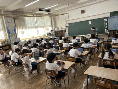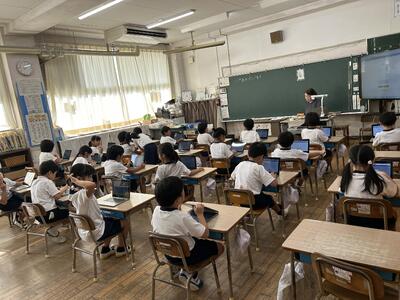 2学期、亀川小学校では亀川小ブランドのあいさつと、授業では1分前着席を重点課題として取り組みます。1学期の学校生活を取り戻しまた2学期リスタートするための取組です。どちらも今週スタート。みんなで頑張っています。1年生もタブレット端末を使って頑張っていました。
