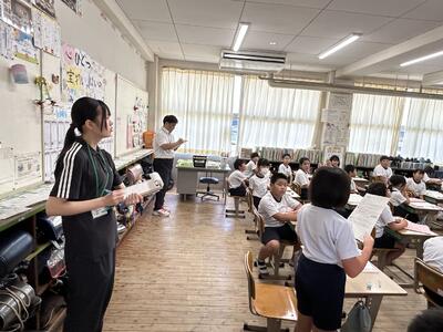 現在、亀川小学校にはお二人の教育実習の先生方がおみえです。亀川小学校出身の大切な未来の教師!亀川小学校での実習で感動をたくさん味わってほしいと考えます。今日は4年2組の参観をされ学んでおられました。