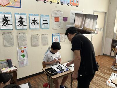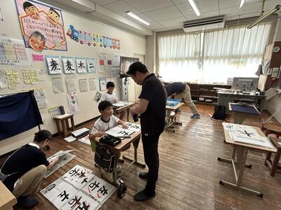 また、毛筆指導に地域の先生がいらしてくださいました。