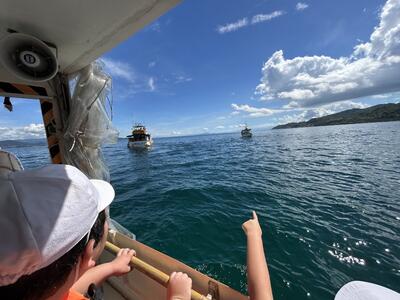 イルカウォッチングが初めての児童もとても多かったです。間近に見れたイルカにみんなで大興奮しました。