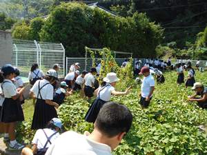 学級園に植えたさつまいももすくすくと成長し、収穫の時期となりました。4年生は地域の山本さん有馬さんに指導していただき、いもほりを行いました。地面の中で育った芋を傷つけないように丁寧に掘り進め、たくさん収穫することができました。収穫した芋は、11月9・10日に行う「ふるさと料理教室」の材料となります。自分たちで育てた芋がどのような料理となるのかとても楽しみです。