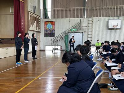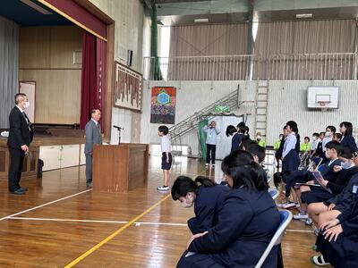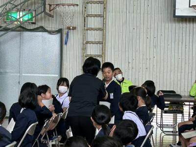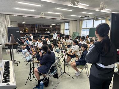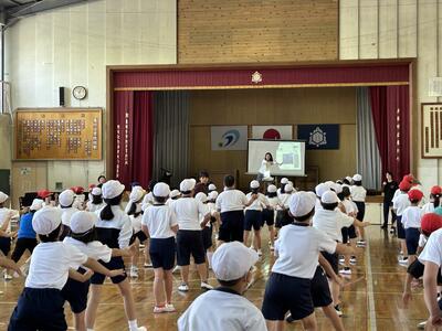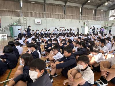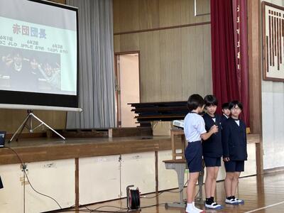 1時間目には4年生。小学校のころに夢中になっていたこと2つ。5時間目には6年生、校長先生の仕事って?どちらも難しく緊張しました。運動会練習期間中も学習も頑張ろう、先生方のお話です。今週も頑張りました。今日はインタビューの様子と、運動会練習。それから運動会開会式で頑張る吹奏楽部の練習の様子です。
