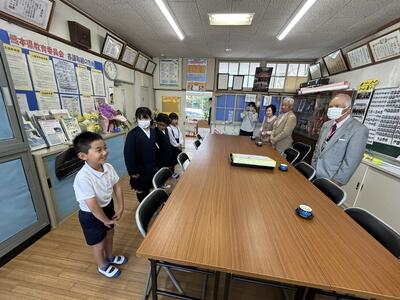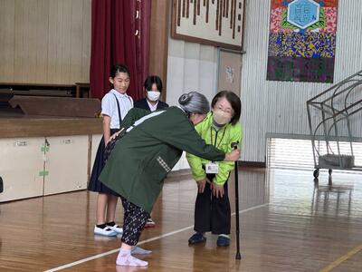 亀川小学校では、五年生を迎えたときに、子ども民生委員に委嘱され、活動を行っていきます。地域のお年寄りの方々と触れ合い親交を深め、地域を知る学習を進めていきます。これまで地域を支え尽力いただいた方々へ、学校として何ができるか、何をすべきか、この活動をチャンスとして捉え進めてまいります。