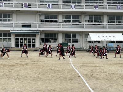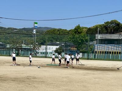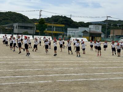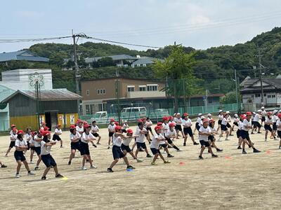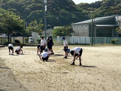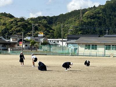 連休明け、朝から六年生が運動場の除草をしてくれていました。雨が降ったあとで、とてもきれいになりました。ありがとうございます。運動会の練習も本格的にスタート!