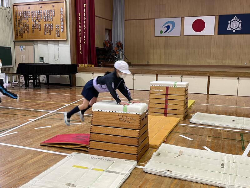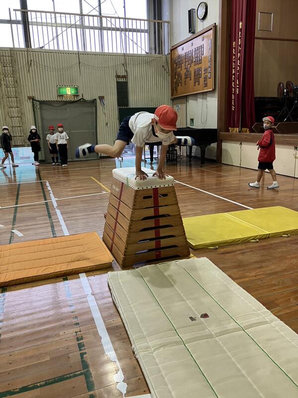 久しぶりの跳び箱を楽しみにしていた子供たちが多く、自分が選んだ跳び箱を跳ぶことができるように熱心に練習しているところです。