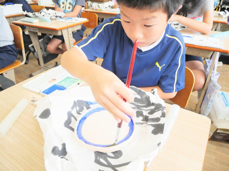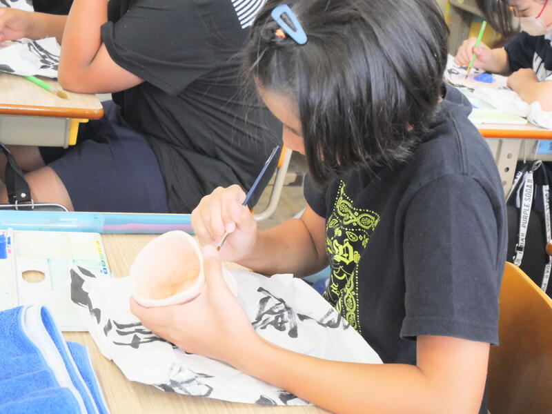 6月に成形したものが焼き上がっていることに子どもたちは感動していました。楽しそうに絵付け作業を楽しんでいました。