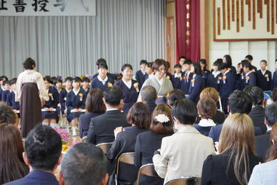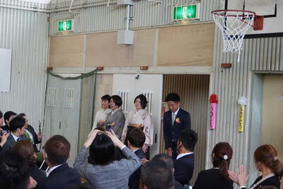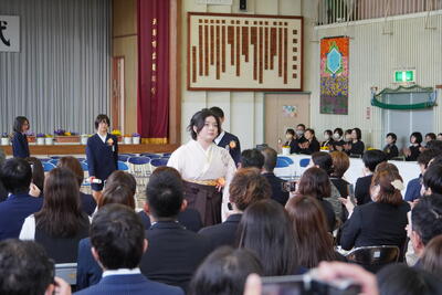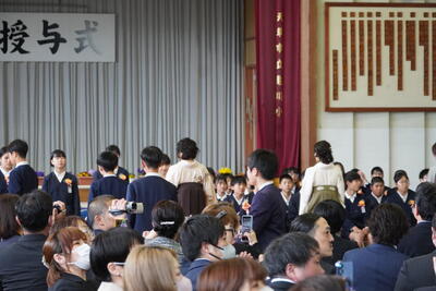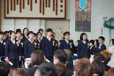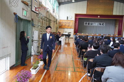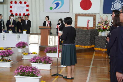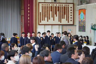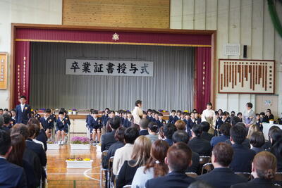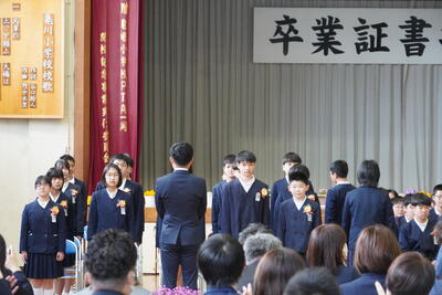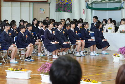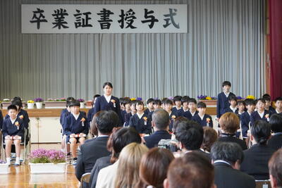 今日は74人の6年生が本校を出発しました。全員出席が叶い、また多くの保護者の皆様、ご来賓の皆様方が式に花を添えてくださいました。