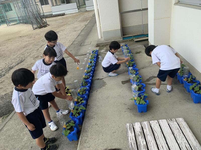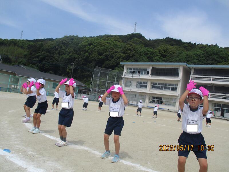 入学して2ヶ月。1年生の運動会表現と朝顔のお世話をする様子です