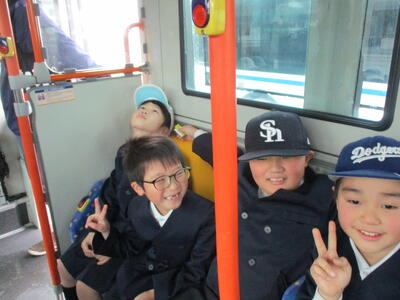 1月13日火曜日、2年生は産交バスの小学生向けの事業、バスの乗り方教室に参加しました。バスの中のこと、乗車の仕方降り方など、バスに関する設備のことなど学びました。また本渡市内をまわり楽しいバスの旅の経験もしました。楽しかったですね。