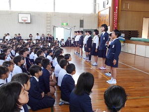 児童集会を実施しました。今回は、各委員会の委員長が今年度の抱負を発表しました。よりよい亀川小学校とするため、407名の力を合わせていきましょう。