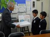 15日(月)に、亀場地区振興会の方に来校していただき、安全タスキの贈呈式がありました。