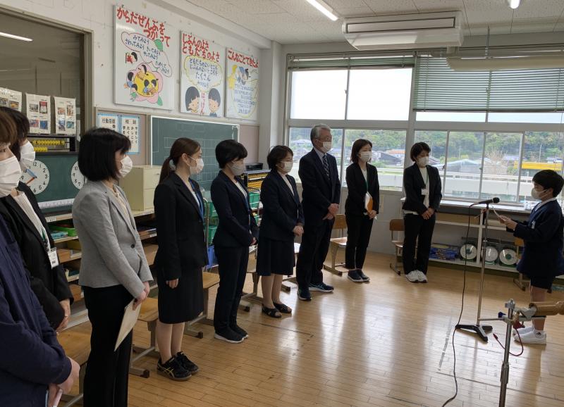 新しい先生方を迎え、児童代表があいさつをしました。堂々とできました。