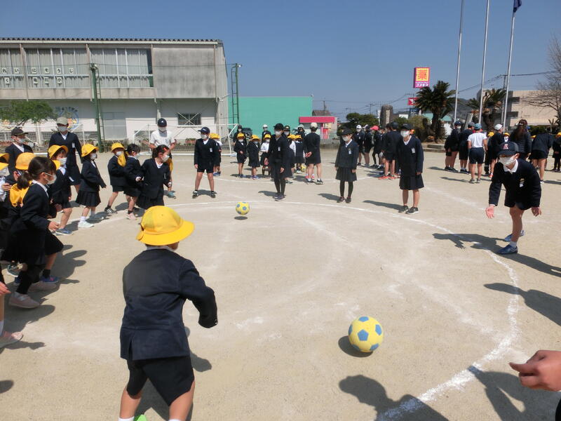 3月8日(火)の昼休みに、6年生と一緒に転がしドッヂボールをして遊びました。