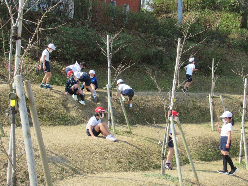 2年生は南公園で、縄跳びやおにごっこなどを楽しみました。