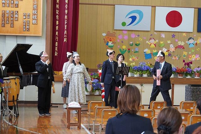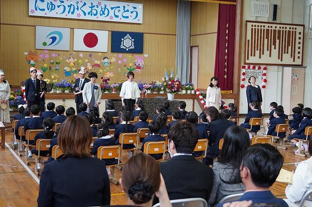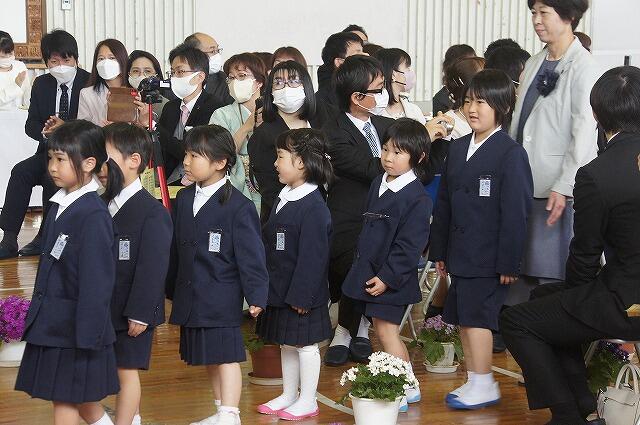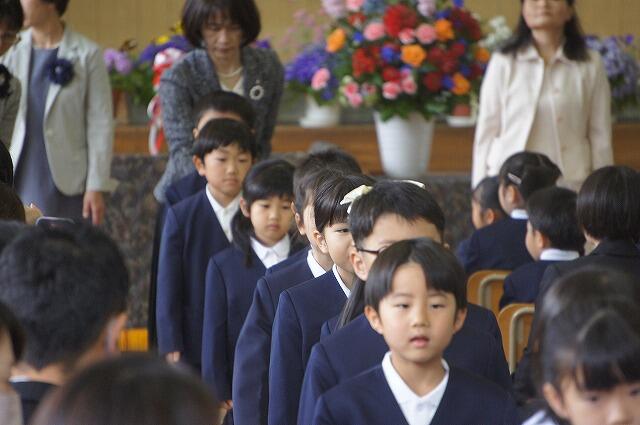 楽しい職員音楽隊の演奏で、今年度もかわいらしい1年生が入場しました。