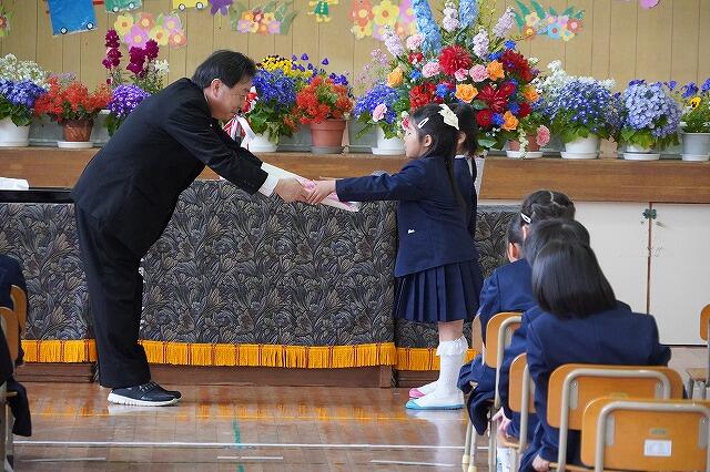 職員音楽隊の演奏で、元気よく1年生が退場しました。