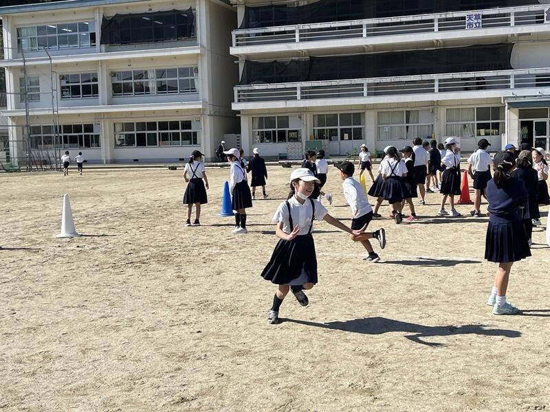 4年生と昼休みに交流遊びをしました。けいどろで盛り上がりました。
