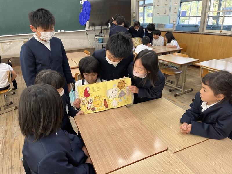 国語の授業で1年生に読み聞かせをしました。1年生に喜んでもらおうと、練習から意欲的に取り組んでいました。