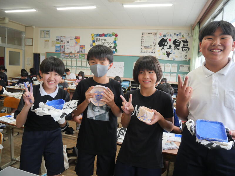 6月に成形したものが焼き上がっていることに子どもたちは感動していました。楽しそうに絵付け作業を楽しんでいました。