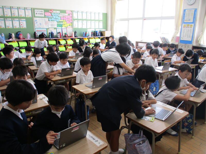 1学期、朝の準備・給食の準備・昼休み・掃除・読み聞かせにボランティア活動・・・