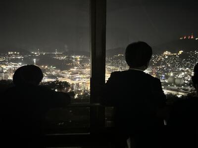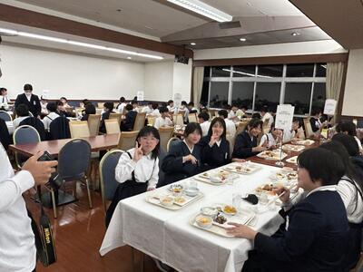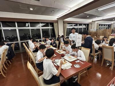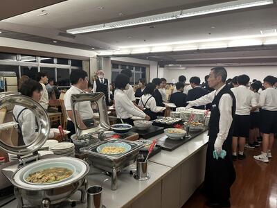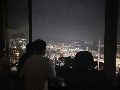 ご飯を食べて夜景をみんなで眺めました。ご飯はビュッフェスタイル、おいしいもの好きなもの、好きなだけいただきました。食レポ係さんからも長崎の夜景は素晴らしかった。みんな歓声を上げてました。今からお風呂です。15分ずつクラスごとに入ります。