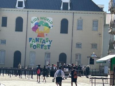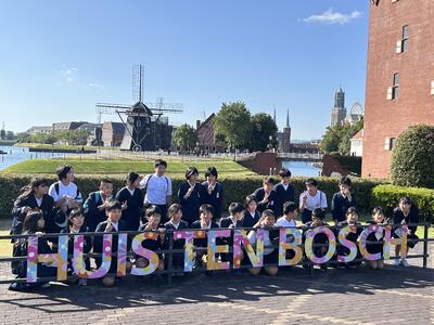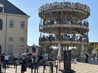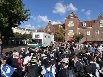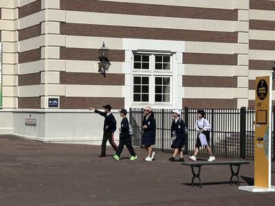 6年生の修学旅行、2日目のお楽しみはハウステンボスのアトラクションです。本日の来場者はやや多いようですが、みんな班で協力しながら乗りたいものを話し合って過ごしています。