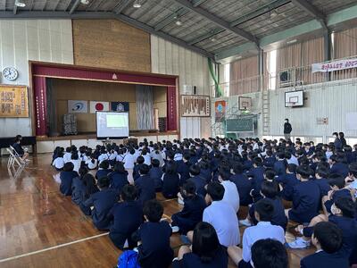 写真は朝活動で実施した開会式と、大会、4時間目の人権集会の様子です。