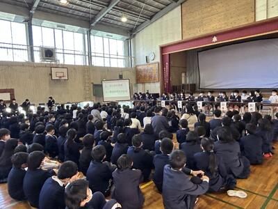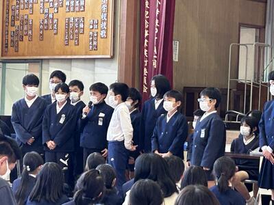 2月17日火曜日5時間目に児童会総会がありました。参加児童は3年生以上と学校運営協議会委員の皆様でした。