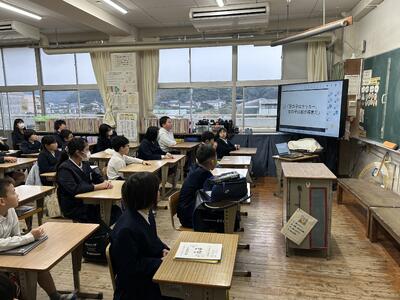 1月13日火曜日、2年生は産交バスの小学生向けの事業、バスの乗り方教室に参加しました。バスの中のこと、乗車の仕方降り方など、バスに関する設備のことなど学びました。また本渡市内をまわり楽しいバスの旅の経験もしました。楽しかったですね。