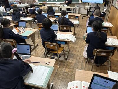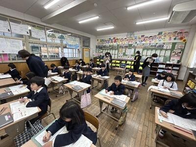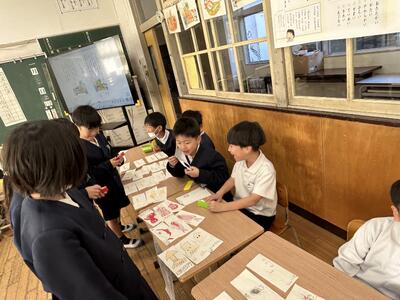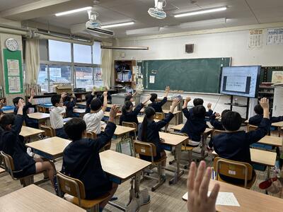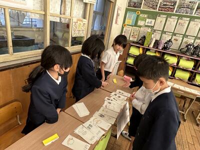 3年生は今日、1組さんも2組さんも、図工で教室を飾っていました。紙を切ったりつなげたり、学級全員で教室を飾っていました。みんな、「見てください!」とてもうれしそうでした。みんなでやるのが楽しいですね!