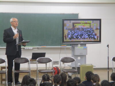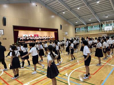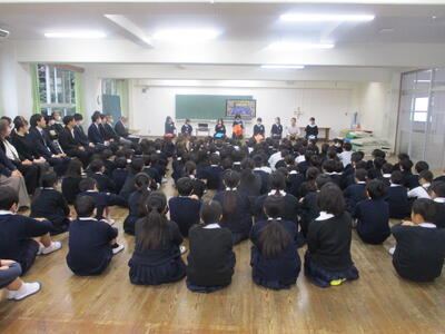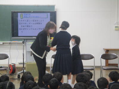 終業式の後、2学期で退任される先生の退任式を行いました。花束贈呈でも子ども達は心のこもったあいさつをしました。